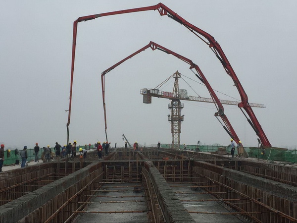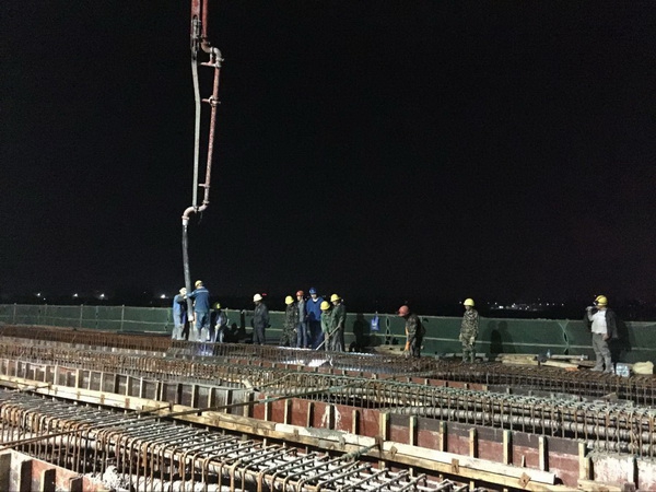 4月10日08时18分,,,,,陪伴着机械及礼炮轰鸣声,,,,,昌东大路南延工程部雄溪河大桥陆续梁初次浇筑混凝土定时开盘,,,,,本次浇筑总方量为1806方,,,,,浇筑桥梁跨度为190米,,,,,历时29个幼时,,,,,于4月11日13时08分浇筑圆满实现!